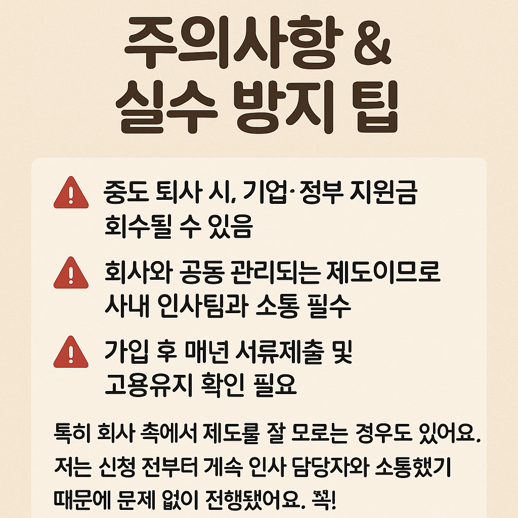 - 중도 퇴사 시, 기업·정부 지원금 회수될 수 있음