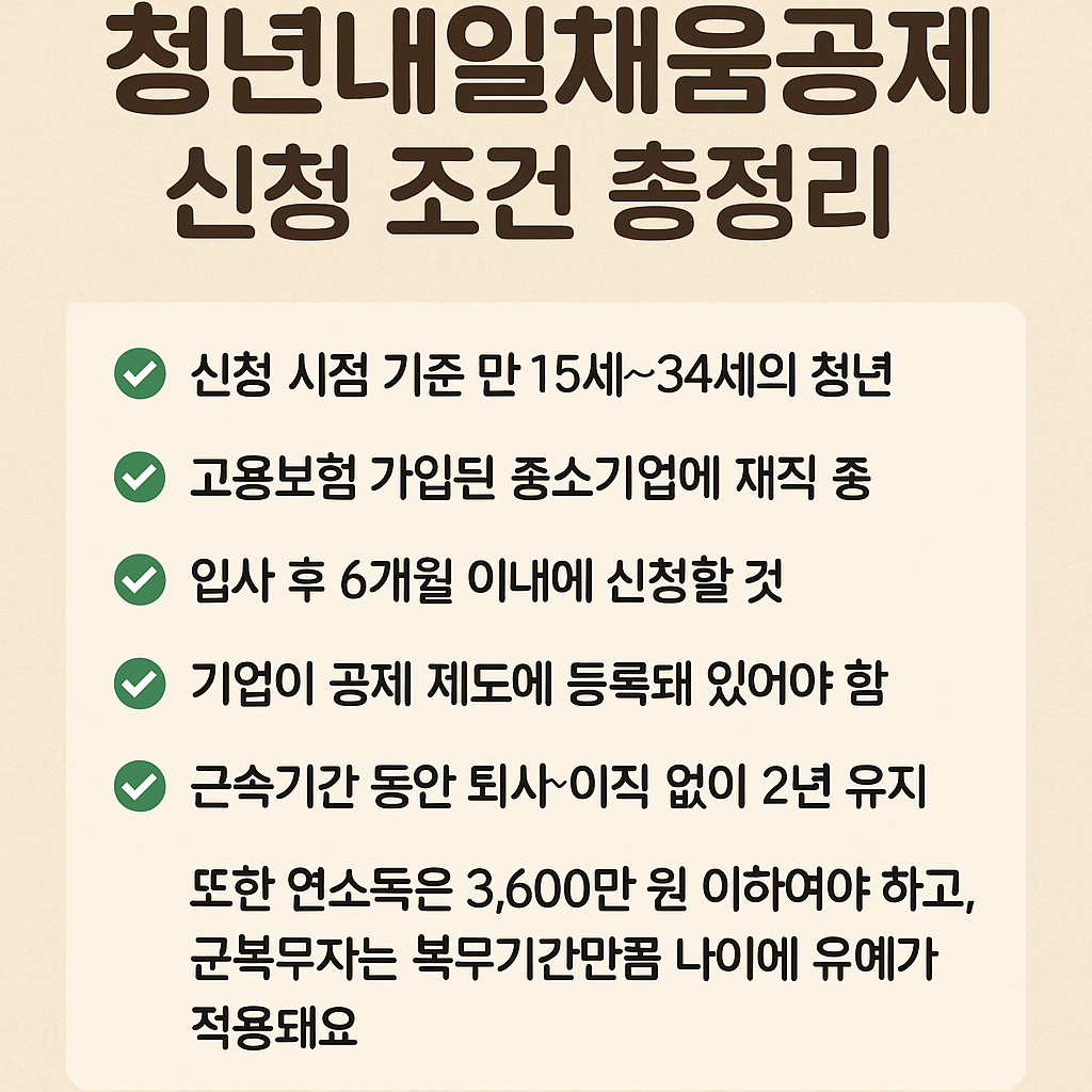 청년내일채움공제를 신청하려면 다음 조건을 모두 충족해야 해요: